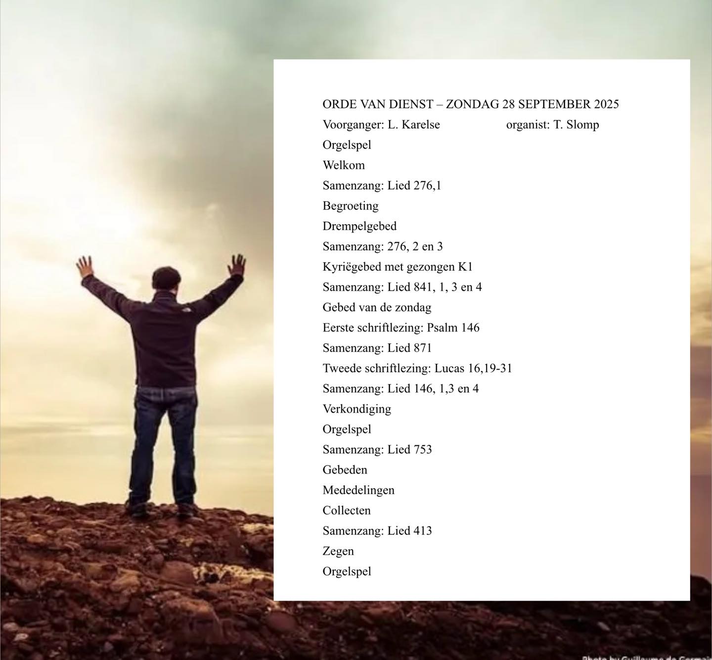 Dienst zondag 28 september met ds. L. Karelse, Meppel