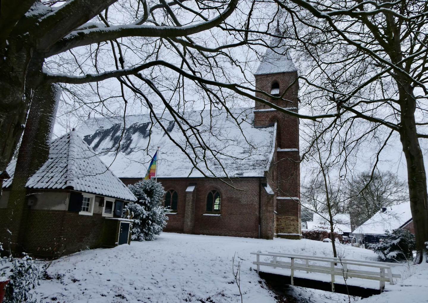 Sneeuw rondom de kerk. Foto gemaakt door Tetsje Zijlstra