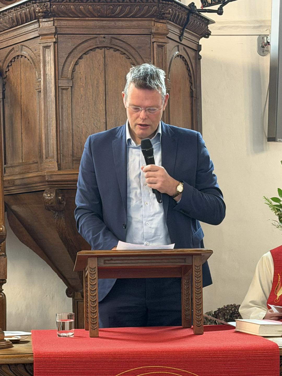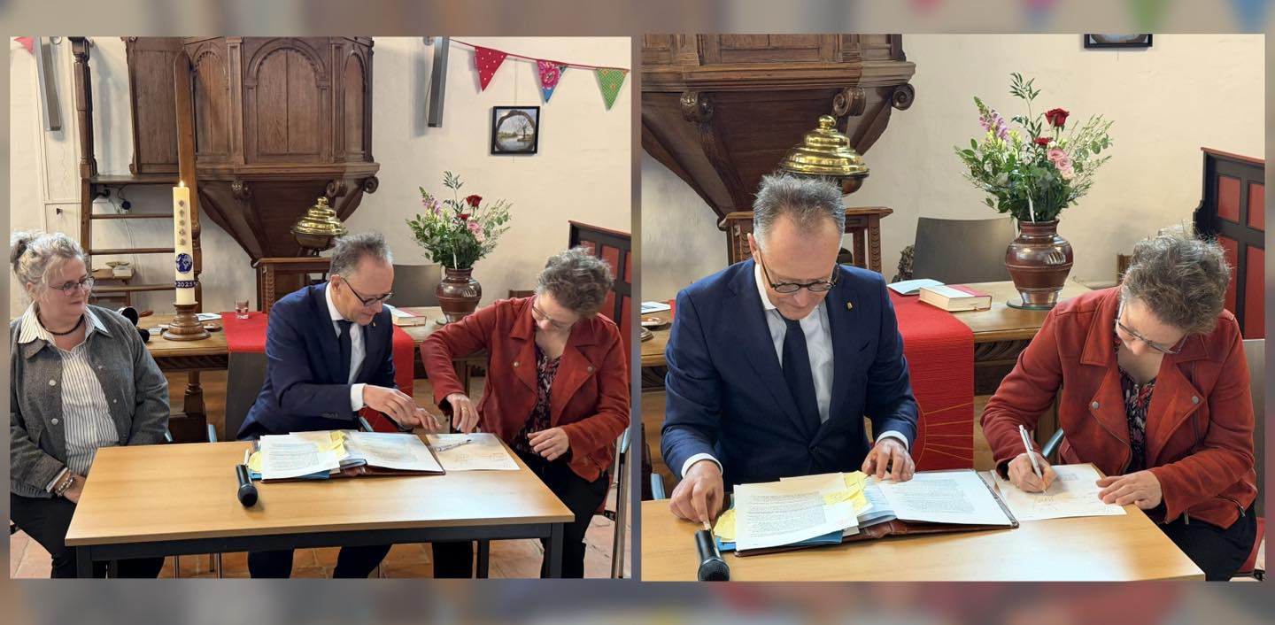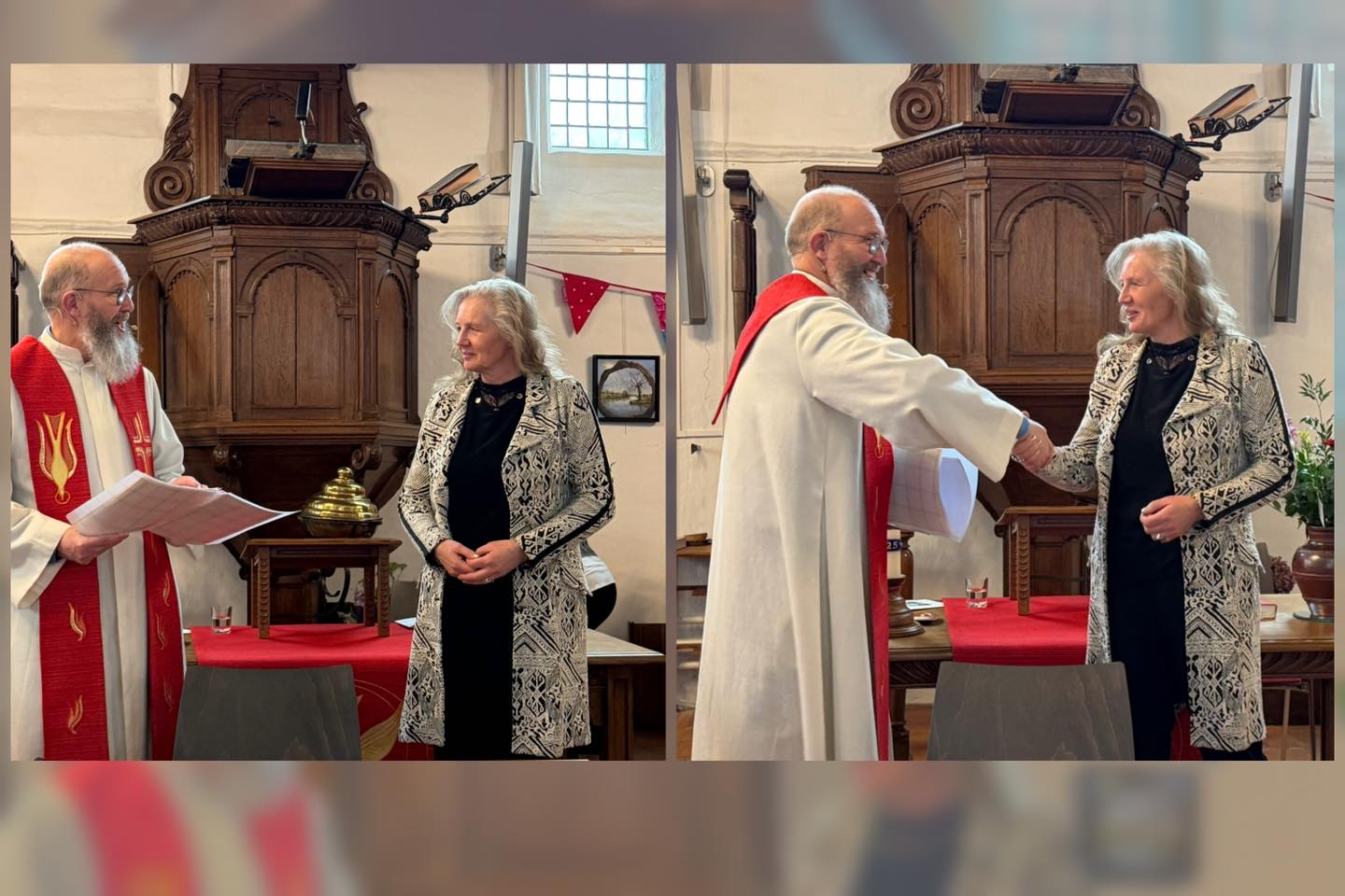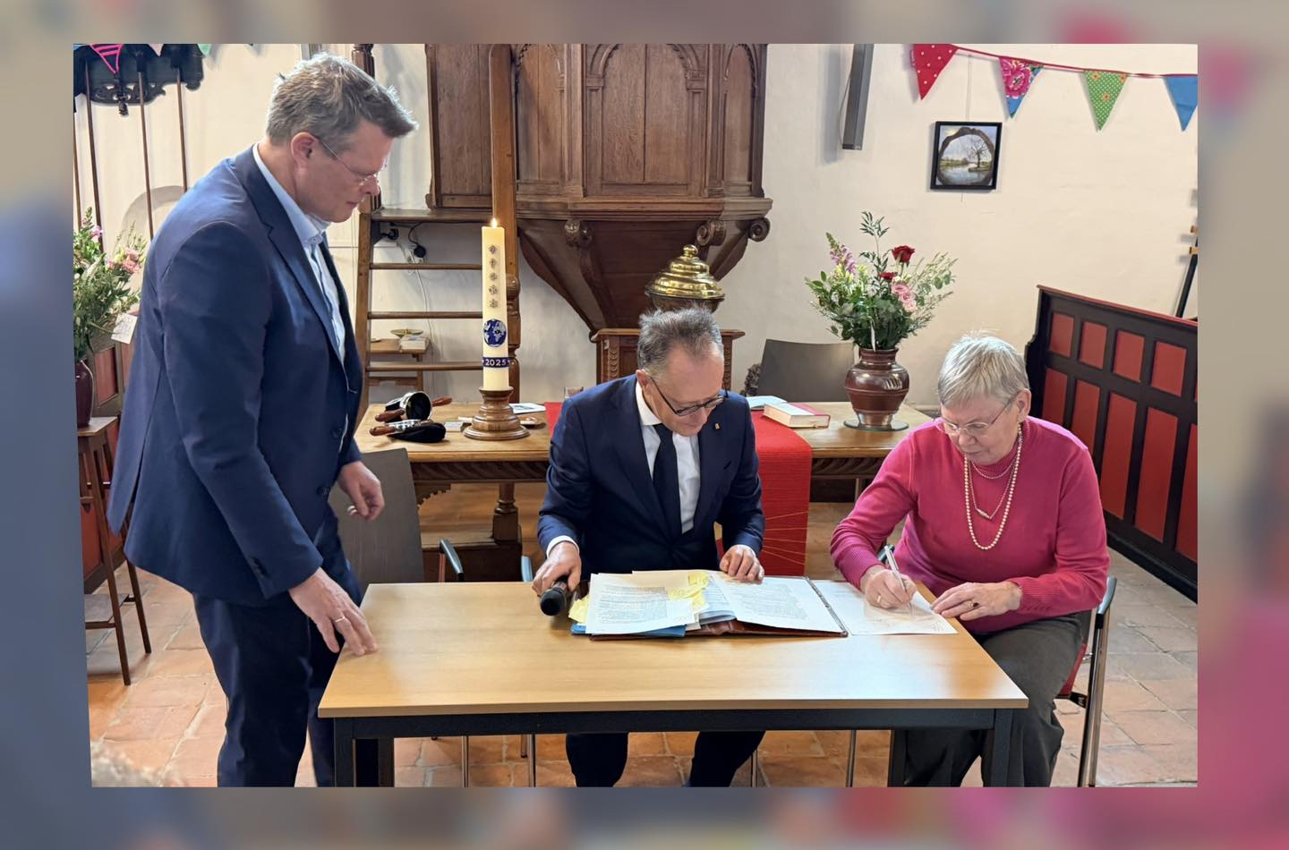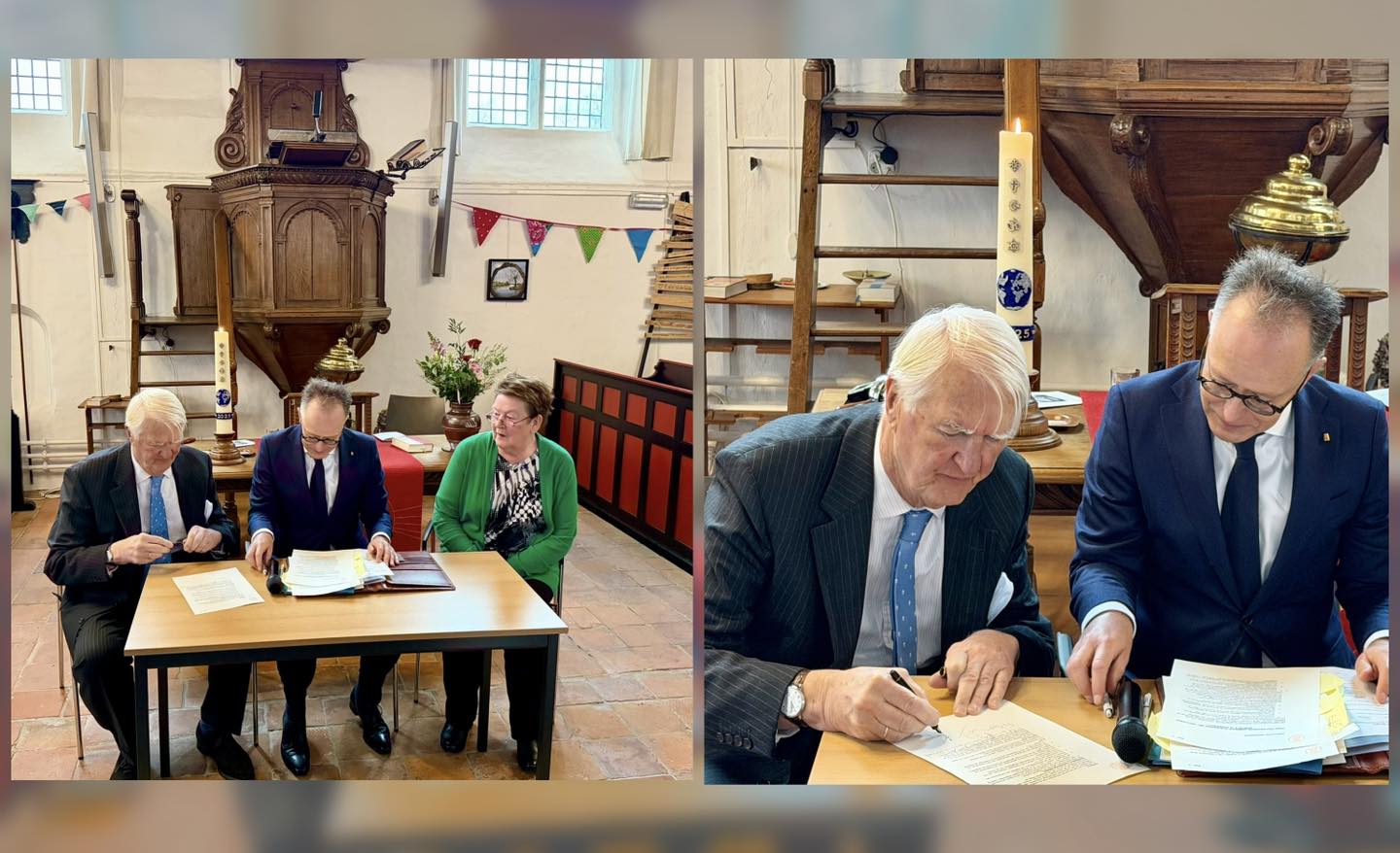 Na de dienst wordt gevraagd te gaan zitten en zal het formele fusiemoment plaatsvinden met het tekenen van de akten.