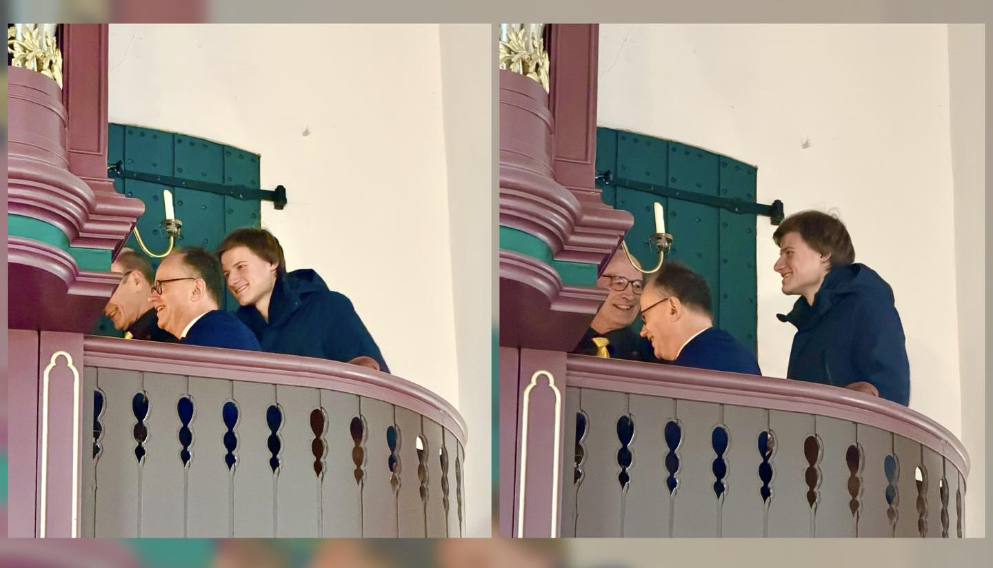 De notaris vond het erg mooi om ook even op het orgel te spelen.