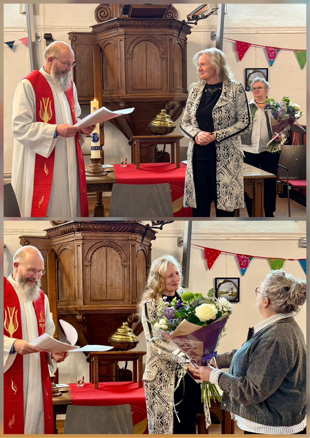 Janneke Span werd bedankt voor haar begeleiding van het proces van samengaan.